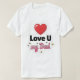 Ein niedliches und charmantes Aufkleber-Design mit einem großen roten Herzsymbol oben, fett schwarzem Text "Liebe U" und rosa Gradientenstylish Text "my dad" mit Glitzern herum. Ein hübscher Cartoon mit einer dicken, weißen Kontur, ideal zum Dekorieren von Laptops, Wasserflaschen, Zeitschriften oder als süßes personalisiertes Geschenk. Lieferbar in hochwertigem, transparenten PNG.