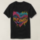 Ein lebendiges T - Shirt-Design mit dem Text "Heart Zuhause" in einer Vielzahl von bunten Buchstaben. Der Text ist fett formatiert und nimmt die Mitte des Shirts ein, wodurch ein visuell auffälliges Aussehen entsteht.