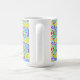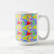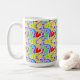 Tasse in einem lebendigen mehrfarbigen Design mit roten Herzen.
