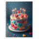 The image features a spiral notebook alongside a birthday cake adorned with candles. It captures the essence of celebration, highlighting various elements associated with birthday festivities and dessert preparation. The cake, decorated with icing and sweet toppings, reflects the joy of baking and special occasions.