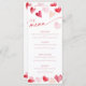 This Bridal Shower menu with red and pink watercolor hearts is perfect for a Valentines Day Hen Party.