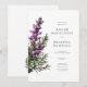 Eine originale digitale Illustration von lila Heideblumen im Stil von vintage botanischen Skizzen ziert diese Einladung.