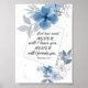 Das inspirierende Schriftplakat zeigt ein einfaches Blumenwasserfarbendesign mit einem modernen Doppelrahmen, der mit blauen und grauen Blume und Blätter geschmückt ist. Es verfügt über Bibel Verse Hebräisch 13:5, ... Gott hat gesagt: "Nie werde ich dich verlassen, nie werde ich dich aufgeben."