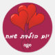Schöne Grafik von drei roten herzförmigen Ballons vor einem Bordeaux Hintergrund mit einem Rahmen in der gleichen Farbe wie die Herzen. Mit den Worten "Happy Birthday" in weißem Text auf Hebräisch: Yom Huledet Sameach. Es gibt eine Vorlage, in der Sie einfach das Alter des Geburtstags-Mädchens/Jungen oder Mann/Frau hinzufügen können.