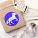 Schöne Grafik eines weißen Pferdes jn silohuette vor einem königlich blauen Hintergrund mit einem Rahmen und die Worte "Happy Birthday" in pastellblau. Für den Pferdefreund.