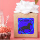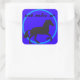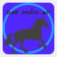 Niedliche schwarze Silhouette eines Pferdes auf einem königsblauen Hintergrund und in einem hellblauen Kreis umkreist. Die Worte "Yom Huledet Sameach" (Happy Birthday in Hebräisch) passen zur schwarzen Silohuette.