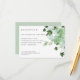 Diese üppige botanische Empfang-Karte, die sich mit der Hochzeitskollektion Eukalyptus Grove abstimmt, zeichnet sich durch ein Spray aus Efeu-Blätter in Aquarellen, grünem Eukalyptus und zartem Snoybeerenblättern aus. Sie besticht durch ihre Empfang-Details, den Timing und die Adresse, die für eine elegante Winterhochzeit, Herbst- oder Herbstfeierlichkeiten oder für botanische oder Gartenfeierliche Feste angegeben ist. Koordiniert mit Hedera-Sammlung. Die Karte kehrt in einer passenden sage-grünen Farbe um.