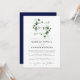 Eine wunderschön elegante Einladung zur Hochzeit in Monogramm mit einem Bio Blumendesign in Aquarellblau und klassischem grauem Schriftart mit schick kalligrafischem Akzent. Ihr Monogramm oder Ihre Ursprünge erscheinen in einem weißen Quadrat, gerahmt von üppigen Efeu-Blätter, Snowberry und Eukalyptus-Blättern auf einem knusprigen, weißen Hintergrund. Die Karte kehrt sich in einer reichen marineblauen Farbe um. Wählen Sie dieses Design für elegante Winterhochzeiten, Herbst- oder Herbsthochzeiten oder sogar Hochzeiten im Sommer. In unserer Hedera Kollektion sind passende Artikel verfügbar. Für Hilfe oder individuelle Anfragen kontaktieren Sie uns bitte über den Shop oder schreiben Sie an citronelladesign@gmail.com