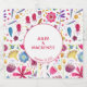 Ein Aquarellbild von Blume und Blätter in kräftigen Farben, verstreut auf weißem Hintergrund. Text kann geändert werden, um Anzug Ihrer Feier.