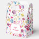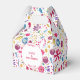 Ein Aquarellbild von Blume und Blätter in kräftigen Farben, verstreut auf weißem Hintergrund. Eine wunderschöne, koordinierende Gefälligkeitsbox, um Ihrem Party zu entsprechen. Sie können den Text ändern, um Ihre Feier zu Anzug.