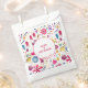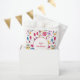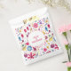 Ein modernes, Bohemisches Aquarellbild mit Blume und Blätter in kräftigen Farbtönen auf weißem Hintergrund. Herrlich koordinierende Gefälligkeitstaschen mit individuellem Text, um Ihre Feier zu erfüllen.