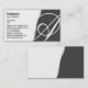 Attraktiven zwei tonten Visitenkarteschablone mit einem heftigen weg Blick, der teilweise einen Skriptart-Monogrammbuchstaben auf Farbbeschaffenheitshintergrund aufdeckt. Der Buchstabe kann selbstverständlich geändert werden. Bereiten Sie vor, mit Ihren Details besonders angefertigt zu werden. Der Entwurf bietet viel des Bereichs für zusätzliche Kundenbezogenheit an. Viel des Raumes für Ihren Firmennamen und sogar die Einführung eines Logos. Die hellere Farbe in dieser Schablone kann auch besonders angefertigt werden. Das Thema wird auch auf der Rückseite fortgesetzt, die Flugzeug verlassen werden oder für eine Vielzahl anderer Details verwendet werden kann. Passend für viele Arten Geschäft.