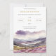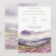 Diese Einladung enthält eine originale digitale Wasserfarben-Illustration eines fiktiven Heidefeldes, des lila blühenden Strauchs, der die Highlands in Schottland bedeckt.