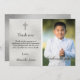 Vielen Dank an Ihre Gäste, die Ihrem Sohn für seine erste heilige Gemeinschaft mit diesem sauberen Design beigetreten. Passen Sie Ihre persönlichen Daten an, senden Sie eine spezielle Nachricht und ein Bild. Klicken Sie auf Anpassen, um die Schriftart und Farben zu ändern, falls gewünscht.