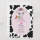 Niedliche, einfache, moderne heilige Kuh 1. Geburtstagseinladung für kleine Mädchen, mit farbenfroher Blumenkrone und Tierdruck.