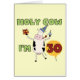 Text liest "heilige Kuh, die ich 30" auf 30. Geburtstag T - Shirts bin, Tassen, Karten, Knöpfe, Magneten, Porto-Briefmarken und anderes 30. Geburtstagskleid und -geschenke mit einer niedlichen Cartoonkuh in einem Partyhut, der ein Geburtstagsgeschenk und einen Geburtstagskleinen kuchen hält!
