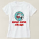 Heilige Kuh bin ich der lustige Entwurf 50, der eine Cartoonkuh kennzeichnet. Groß für jemand, das über das Drehen von fünfzig Jahren alt entsetzt hat. Ein großes Gaggeschenk für einen 50. Meilensteingeburtstag. Feiern Sie jemand fünfzigstes mit einem Lachen!