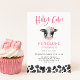 Niedliche Farm Thema Mädchen Geburtstagsfeier Einladung Karte mit Aquarellbild einer Babykuh mit einer Blume in ihrem Kopf. Der Text sagt "heilige Kuh! XX wird 1!"