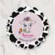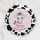 Niedliche, lustige rosa schwarz-weiße heilige Kuh mit Blütenkrone 1. Geburtstag danke Ihnen für Tag. Danke schön!
