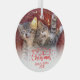 Ideal for cat lover, this lovely Christmas ornament feature hat "Meowy Christmas" Caption decorated with adorable cat ears and snowflakes gestiftet. Easily customize this ornament with one of your favorite cat's pictures, the name(n) of your cat(s) und the current year.