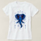 Dieses visuell auffällige Bild zeigt den Kopf eines Elefanten, der mit komplizierten geometrischen Mustern und Symbolen geschmückt ist. Die Augen des Elefanten leuchten mit einem blauen Licht, und sein Stamm wird in einer Geste der Ehrfurcht erhoben. Die Farbpalette ist eine Kombination aus Blau, Rot und Schwarz, die einen auffallenden Kontrast schafft. Das Bild wird durch ein komplexes geometrisches Design gerahmt, was auf eine spirituelle oder mystische Verbindung hindeutet.