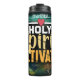 Diese eindrucksvolle Grafik zeigt den Kommando "HOLY Spirit ACTIVATE" in fett leuchtenden Schriftart, wobei "Spirit" eine leuchtend grüne Aura ausstrahlt. Ein Pfeil mit Herz schmückt die Oberseite. Die Worte sind Set gegen eine dunkle, stilisierte, papierschneidende Landschaft, die Berge, immergrüne Wälder, einen ruhigen Fluss und einen glühenden Mond darstellt und eine mystische, spirituelle Atmosphäre hervorruft.