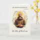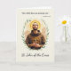 Dieses friedliche Hingabe-Portrait des Heiligen Johannes des Kreuzes zeigt den verehrten Karmeliten-Mystiker, der ein Kruzifix hält und in ruhiger Vertrauenswürdigkeit nach oben blickt. Sein sanfter Ausdruck und seine einfache Gewohnheit spiegeln seinen tiefen Glauben und seine Kapitulation vor Gottes Liebe wider. Mit einem Segen auf der Grundlage der Schrift auf der Vorderseite bietet dieses Design Komfort und Ermutigung für jede Zeit des Jahres - ideal, um spirituelle Unterstützung zu senden, einen Moment des Nachdenkens zu teilen oder die stille Schönheit des Glaubens zu ehren.