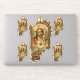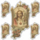 Dieser wunderschöne Kontur-Aufkleber zeigt ein traditionelles katholisches Bild des heiligen Herzens von Jesus mit einer goldenen dekorativen Grenze und Lamm.