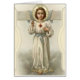Wunderschönes Bild des katholischen religiösen Bildes des Heiligen Herzens Jesu als kleiner Junge, der vor einem Kreuz stehend ist. Im Inneren ist ein wunderschönes Schriftstellerverse Matthew 11, 27-30 mit einem Vintagen Rahmen.