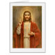 Vintages religiöses Heiliges Herzbild. Christus umgeben von leuchtendem Halo und Lichtstrahlen.