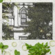 Dieses Bild zeigt einen digital stilisierten, fast handgezeichneten oder illustrierten Blick auf das Convent Gebäude in Daylesford, teilweise versteckt hinter üppigem, dichtem Blattwerk. Die Architektur ist Viktorianisch gotisch, mit großen, engen Gewölbefenstern und aufwändigen Steindetails. Über den Bäumen erhebt sich ein zentraler Turm mit einem rötlich gekuppelten Dach. Die Vegetation umgibt das Gebäude wunderschön, was ihm eine geheimnisvolle, fast bezaubernde Qualität verleiht. Der künstlerische Effekt fügt wirbelnde Texturen und kräftige schwarze Konturen hinzu, sodass die Szene traumhaft aussieht - wie etwas aus einem Geschichtenbuch oder einer Erinnerung.