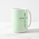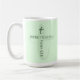 Diese Tasse weist ein hellgrünes Kreuz mit einem heilenden Bibelverse auf der Vorder- und Rückseite auf. Text ist anpassbar.