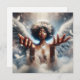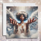 Leere Karte. Hübsche Illustration eines wunderschönen afroamerikanischen Engels mit ihren ausgestreckten Händen, als ob sie etwas gute Energie anbietet.