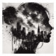 Dieses faszinierende Doppelbelichtungsartuch zeigt die Silhouette eines Mädchens, die mit einer Skyline der Stadt verwoben ist und Heilung, Transformation und Verbindung zum urbanen Leben symbolisiert. Dieses Schwarz-Weiß-Stück mit ausgewaschter Grunge-Textur verbindet die menschliche Verwundbarkeit mit der Kraft der Stadt und ruft ein Gefühl von emotionaler und physischer Erholung hervor. Ideal für diejenigen, die ein mächtiges, modernes Stück suchen, das auf die Reise der Heilung und des persönlichen Wachstums inmitten der dynamischen Energie der Stadt verweist.