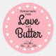 Hausgemacht mit Love und Butter Classic Round Sticker. Perfekt für den detailorientierten Baker! Gebacken mit Liebe und Butter, was sonst noch! Beenden Sie den nächsten Stapel von schönen Cookies oder Cupcakes, die Sie aussenden oder Ihrer Branding-Sammlung hinzufügen. Cute Bakery Sticker.
