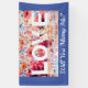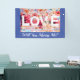 Heiraten Sie mich? Ein Heiratsantrag in Skripttext mit einem "Liebe" Blumenmuster-Foto mit Ihrem Namen und Ihre benutzerdefinierte Nachricht vorne. Mittelblauer Hintergrund.