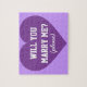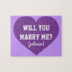 Heiraten Sie mich? Das Puzzle mit lila Herz. Überraschen Sie Ihren Liebsten diesen Valentinstag (oder jeden Tag!) mit einem einzigartigen Angebot in Form eines Puzzles. Personalisieren Sie den Namen Ihrer Freundin oder Ihres Freundes und passen Sie den Stil, die Größe und die Farbe des Schriftartes an.