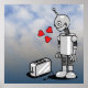 Der Künstler Thomas verbindet grafische und fotografische Elemente, um dieses Porträt eines von der Liebe geplagten Roboters und das Brotbräunungsobjekt seines Wunsches zu produzieren. Der Roboter ist eine Karikatur seines Sohnes Jules (wenn er ein Animatron wäre). Der Binärkode im Hintergrund ist eine Übersetzung der Texte eines großartigen Songs über Roboter durch eine lustige Band aus Neuseeland.