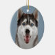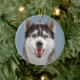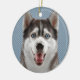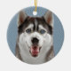 Ein Huskyschlittenhund mit Fotografie/Bild der blauen Augen. Die meisten Produkte können Sie Ihre Initiale addieren oder sie mit Ihrem Namen auf dem Schneeflockemonogramm personifizieren.