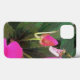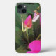 Das Kunstwerk auf diesem iPhone 13 Case ist ein Originalfoto von MaeFlowers von einer neuen Guinea impatisiert Pflanze, in Blüte mit heißen rosa Blume. Das Foto ist eine Nahe, die Teile der leuchtend rosa Blume Blütenblätter zeigt, eine Blume in einer blassrosa Farbe und die Überreste einer früheren Blüte. Die dunkelgrünen Blätter der Ungedulen sind lang und spitz, mit gezackten Kanten auf einem warmen, hellgrauen Hintergrund. Das Design hat eine Tapisserie.