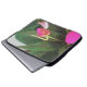 Das Kunstwerk auf diesem 15" Laptop Sleeve ist ein Originalfoto von MaeFlowers von einer neuen Guinea impatisiert Pflanze, in Blüte mit heißen rosa Blume. Das Foto ist eine Nahe, die Teile der leuchtend rosa Blume Blütenblätter zeigt, eine Blume in einer blassrosa Farbe und die Überreste einer früheren Blüte. Die dunkelgrünen Blätter der Ungedulen sind lang und spitz, mit gezackten Kanten auf einem warmen, hellgrauen Hintergrund. Das Design hat eine Tapisserie.