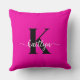 Dieses schlichte, elegante, 20 Zoll große Kissen mit Ihrem Vornamen in einem trendigen Script-Schriftart in Weiß und Ihre erste Initiale in einem modernen Kappe-Schriftart in Schwarz ist perfekt für Sie. Es ist stilvoll und trendig und dennoch sehr klassisch. Es wird fantastisch aussehen in Ihrem Schlafzimmer, Wohnzimmer, Aussichtsterrasse, sie vergossen.
