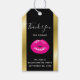 Junggeselinnen-Abschied (oder Geburtstag etc..) danke Ihnen Geschenketiketten mit einem zeichn eines glänzenden rosa femininen Lippen auf einem schwarzen Hintergrund. Ein Imitat goldener Farbverlauf grenzt an die Seiten.