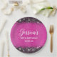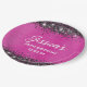 Girly Imitate funkelnd schwarzer Glitzer über eine anpassbare Folie gebürstet Metall heiß rosa Hintergrundfarbe. Sie können Ihre eigenen 50. Geburtstagsparty dekorativen kleinen runden Teller Papier erstellen. Diese klassisch elegante kalligraphische heiße rosa Platte ist perfekt zum Geburtstag.