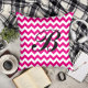 Mit Monogramm Zickzack oder Zickzackmuster auf einem Kissen. Passen Sie dieses Design an, indem Sie die heiß rosa Hintergrundfarbe bearbeiten und ein Design mit Ihrer Lieblingsfarbe erstellen. Sie können auch die Größe der nahtlosen Kachel ändern, indem Sie ein- oder auszoomen. Probieren Sie einen anderen Schriftart Stil, Größe oder Design. Sie können auch zwei weitere Buchstaben hinzufügen, um ein trendy Skript-Schriftart mit 3 Buchstaben zu erstellen.