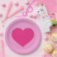 Dieser Teller weist ein formschön großes Single-Hot-Pink-Herz auf. Ideal für eine Babydusche, Taufe oder zum ersten Geburtstag.