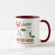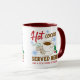 Hier ist eine niedliche Tasse, die erklärt "Hot Kakao SERVED HIER" mit dem kleineren Text unten, dass "UND EIN PAAR GRAMM OF SARCASM". In der Mitte befindet sich ein Retro-Bild von einer Tasse Kakao, und eine heilige Sprig. Ein paar blaue Schneeflocken treiben um das Bild herum. Das Bild wird auf der zweiten Seite wiederholt.