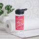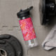 Heiß rosa, orange und goldgelb wirbeln in diesem romantischen und dennoch modernen Look. Der Single mit goldgelber Akazie schmückt die untere und mittlere Ecke. Helle Farben in einem abstrakten wirbeln. Die Front feiert die Braut und Bräutigam, das Gegenteil kann für wichtige Familienmitglieder oder Mitglieder der Hochzeitsfeier personalisiert sein.