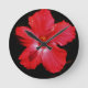 Heiße rosarote Hibiskus-Blume auf Schwarzem Runde Wanduhr