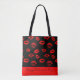 Heiße rote Lippenmuster mit Totbeutel. Spezielles romantisches Geschenkdesign für Lieben am Valentinstag.